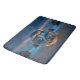 A surreal picture of a seahorse and starfish in their underwater environment all in an orb. The orb is on a beach with the ocean behind it. A pretty nautical coastal themed bathmat for your bathroom decor.
