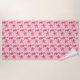 Beach towel in a block print pattern, based on a spiral seashell, in deep coral pink against a light coral pink background