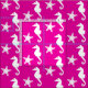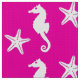 Mixed media digital rendition of a seahorse and starfish against a deep fuchsia pink background