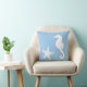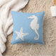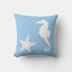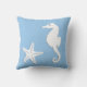 Seahorse & starfish - white on pale blue throw pillow