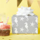 Seahorse & starfish - white on silver grey wrapping paper