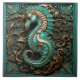 Seahorse Teal and Copper Marine Life Aquatic Ceramic Tile