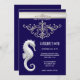 Seahorse theme summer beach birthday navy white invitation