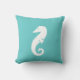 part of the ocean themed decor SEAHORSE WHITE on teal blue pillow on one side and teal and white strip on back.