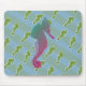 Mousepad with seahorses and stripes background pattern and beautiful sea horse drawing.