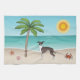 Seal And White Iggy Dog At Tropical Summer Beach Kitchen Towel