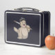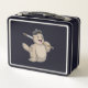This is a standard metal lunchbox that appears to work just fine. We designed this box ourselves with an uploaded photo and custom text on the front and back. It looks absolutely beautiful except the front of the lunchbox is not centered like it shows in the photo. The print borders don't align with the inset flat part of the box where the preview photo online showed it perfectly centered in there. The back looks nice and centered though.