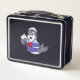 This is a standard metal lunchbox that appears to work just fine. We designed this box ourselves with an uploaded photo and custom text on the front and back. It looks absolutely beautiful except the front of the lunchbox is not centered like it shows in the photo. The print borders don't align with the inset flat part of the box where the preview photo online showed it perfectly centered in there. The back looks nice and centered though.