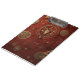 An ornate emblem glows in gold against a textured crimson backdrop, surrounded by arcane symbols and cryptic inscriptions.