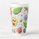 Seamless background design with colorful flowers latte mug