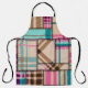 Great color and even though I ordered the kid size, it covers well enough to use during the holidays. I am not a big woman and prefer a shorter apron. I stand 5"6" and the length of the garment goes to mid-thigh. The tie straps fit well at my waist and even though there is no neck strap adjustment, the opening is plenty big enough. I am happy with the size and fit. I am sharing my apron with my 10 year old grandson, too! The color is vibrant and looks good, as shown on the website. The stitching looks strong and reinforced. Photographed is front side and back side of the apron, reinforced straps and coloring. My phone camera may not be the best at showing the details.