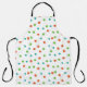 Great color and even though I ordered the kid size, it covers well enough to use during the holidays. I am not a big woman and prefer a shorter apron. I stand 5"6" and the length of the garment goes to mid-thigh. The tie straps fit well at my waist and even though there is no neck strap adjustment, the opening is plenty big enough. I am happy with the size and fit. I am sharing my apron with my 10 year old grandson, too! The color is vibrant and looks good, as shown on the website. The stitching looks strong and reinforced. Photographed is front side and back side of the apron, reinforced straps and coloring. My phone camera may not be the best at showing the details.