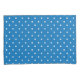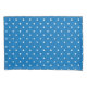 Seamless blue background pattern featuring evenly spaced, small white polka dots.