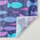 Seamless boho flat pattern with doodle fishes and bubbles floating to the right on blue background. Underwater lagoon world. Child texture for fabrics, wallpapers and your creativity