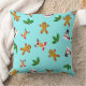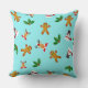 Decorate your home this holiday season with this sweet and festive pillow. Featuring a pattern with ginger bread man, snowman and holly mistletoe on blue background, it is sure to give your whole house a festive feel.