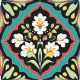 Seamless Decorative Floral Teal Black Folk Art Ceramic Tile