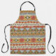 Great color and even though I ordered the kid size, it covers well enough to use during the holidays. I am not a big woman and prefer a shorter apron. I stand 5"6" and the length of the garment goes to mid-thigh. The tie straps fit well at my waist and even though there is no neck strap adjustment, the opening is plenty big enough. I am happy with the size and fit. I am sharing my apron with my 10 year old grandson, too! The color is vibrant and looks good, as shown on the website. The stitching looks strong and reinforced. Photographed is front side and back side of the apron, reinforced straps and coloring. My phone camera may not be the best at showing the details.