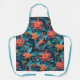 A beautiful apron with a seamless paper floral pattern against a blue background.