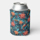 A beautiful can cooler with a seamless paper floral pattern against a blue background.