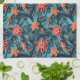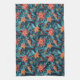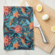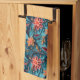 A beautiful kitchen towel with a seamless paper floral pattern against a blue background.
