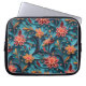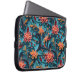 A beautiful laptop sleeve with a seamless paper floral pattern against a blue background.