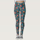 A beautiful pair of leggings with a seamless paper floral pattern against a blue background.