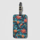 A beautiful luggage tag with a seamless paper floral pattern against a blue background.