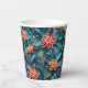 A beautiful set of paper cups with a seamless paper floral pattern against a blue background.