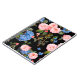 Seamless floral pattern in victorian style. Bouquet of light pink garden roses and blue hydrangea on black background . Watercolor painting. Botanical illustration. .