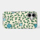 Seamless floral pattern with blue flowers, green leaves, and twisting vines on a light beige background. The design is lively and decorative.
