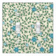 Seamless floral pattern with blue flowers, green leaves, and twisting vines on a light beige background. The design is lively and decorative.