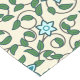 Seamless floral pattern with blue flowers, green leaves, and twisting vines on a light beige background. The design is lively and decorative.