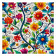 A digital rendering of a seamless, repeating colorful floral pattern.
