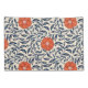 Seamless floral pattern with vibrant orange flowers and navy blue leaves on a beige background, creating an ornate, symmetrical design.