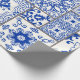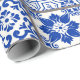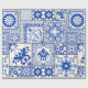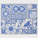 Seamless patchwork tile with Victorian motives. Majolica pottery tile, blue and white azulejo, original traditional Portuguese and Spain decor. Vintage