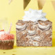 The cappuccino pattern in the image features multiple top-down views of cappuccino cups adorned with artistically crafted foam art. Each cup showcases a unique design on its foam surface, including a heart shape, a Rosetta (leaf-like pattern), and an intricate swirl resembling a flower. The warm color palette—shades of brown for the coffee and white for the cups and foam art—creates a cozy café ambiance. Some cups are accompanied by saucers, and you’ll spot coffee beans nearby. Overall, it’s a delightful blend of coffee aesthetics, perfect for Zazzle wrapping paper!