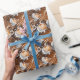 The cappuccino pattern in the image features multiple top-down views of cappuccino cups adorned with artistically crafted foam art. Each cup showcases a unique design on its foam surface, including a heart shape, a Rosetta (leaf-like pattern), and an intricate swirl resembling a flower. The warm color palette—shades of brown for the coffee and white for the cups and foam art—creates a cozy café ambiance. Some cups are accompanied by saucers, and you’ll spot coffee beans nearby. Overall, it’s a delightful blend of coffee aesthetics, perfect for Zazzle wrapping paper!