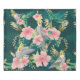Seamless pattern cute cockatiel parrot sits on green leaves and pink flower. Cartoon animal design flat on green background
