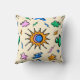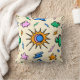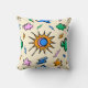 A fun and vibrant throw pillow showcasing an abstract seamless design of clouds, lightning bolts, and the sun perfect for any room.