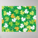 Seamless pattern of scattered clovers and shamrock poster