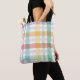 Colorful rainbow gingham plaid tote bag with seamless tartan check design.