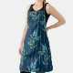 Seamless pattern with blue leaves and stripes apron