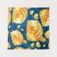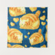 Seamless pattern with cute polygonal cartoon cats, gold cat on blue background