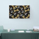 Seamless pattern with gold, jewelry, shiny dragonflies with detailed, sparkling wings on black background. Gold dragonfly.