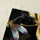 Seamless pattern with gold, jewelry, shiny dragonflies with detailed, sparkling wings on black background. Gold dragonfly.