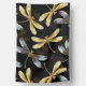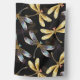 Seamless pattern with gold, jewelry, shiny dragonflies with detailed, sparkling wings on black background. Gold dragonfly.