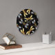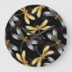 Seamless pattern with gold, jewelry, shiny dragonflies with detailed, sparkling wings on black background. Gold dragonfly.
