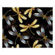 Seamless pattern with gold, jewelry, shiny dragonflies with detailed, sparkling wings on black background. Gold dragonfly.