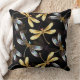 Seamless Pattern with Golden Dragonflies Throw Pillow
