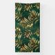 Seamless pattern of gold, jewelry, shiny fern branches and leaves on green, woodland, textured background. Golden fern.